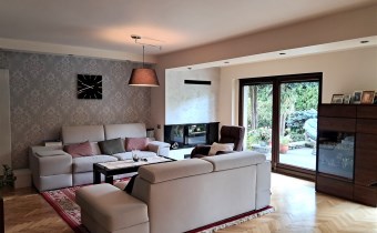 - parter: duży salon z kominkiem z wyjściem na taras; kuchnia ze spiżarnią, garderoba