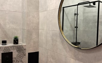 - na podłodze panele i płytki