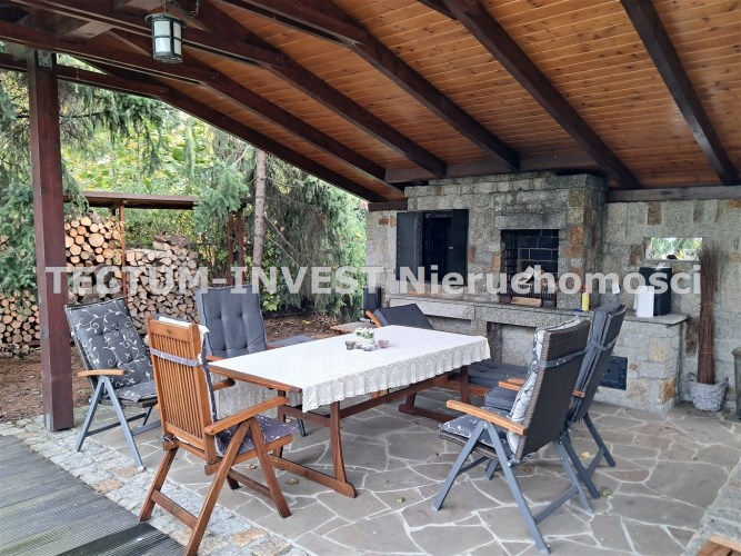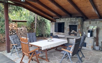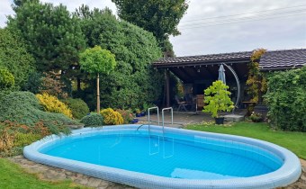 - basen z podgrzewaną wodą. Tuż obok zadaszony kącik grillowy wraz z wędzarnikiem