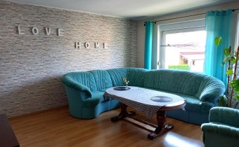 I piętro: duży salon (można wyodrębnić dwa pokoje), pokój, sypialnia, łazienka, kuchnia, balkon